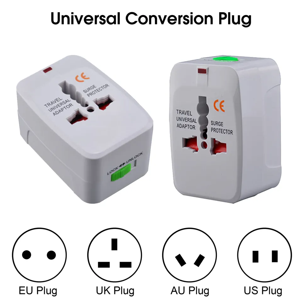 All-in-one universal power adapter with worldwide plug compatibility, providing safe and convenient charging across multiple countries.